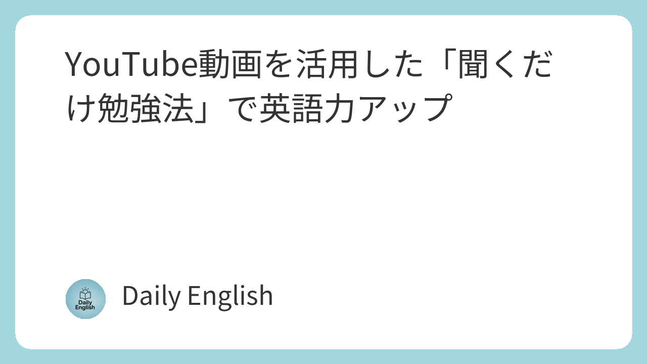 英語を学びたいけれど、忙しくてまとまった時間が取れない… そんな方におすすめなのが、YouTube動画を活用した「聞くだけ勉強法」です。 本記事では、聞くだけで効率的に英語力を伸ばす方法と、Daily Englishの動画を活用した具体的な学習法をご紹介します。