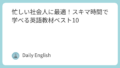 忙しい日常でも、Daily Englishの動画を活用すれば、聞くだけで効率的に英語力を伸ばせます。 習慣化することでリスニング力が自然にアップし、フレーズや単語も定着します。 まずは1日1本から始めて、毎日の英語学習習慣を作りましょう。