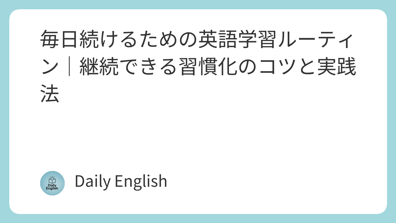 「英語の勉強を始めたけど、いつの間にかやめてしまった…」そんな経験はありませんか? 英語力を上げる最大の鍵は「継続」です。しかし、モチベーションだけに頼ると長続きしません。 この記事では、英語学習を毎日の生活に自然に組み込むルーティンの作り方と、習慣化のコツを解説します。