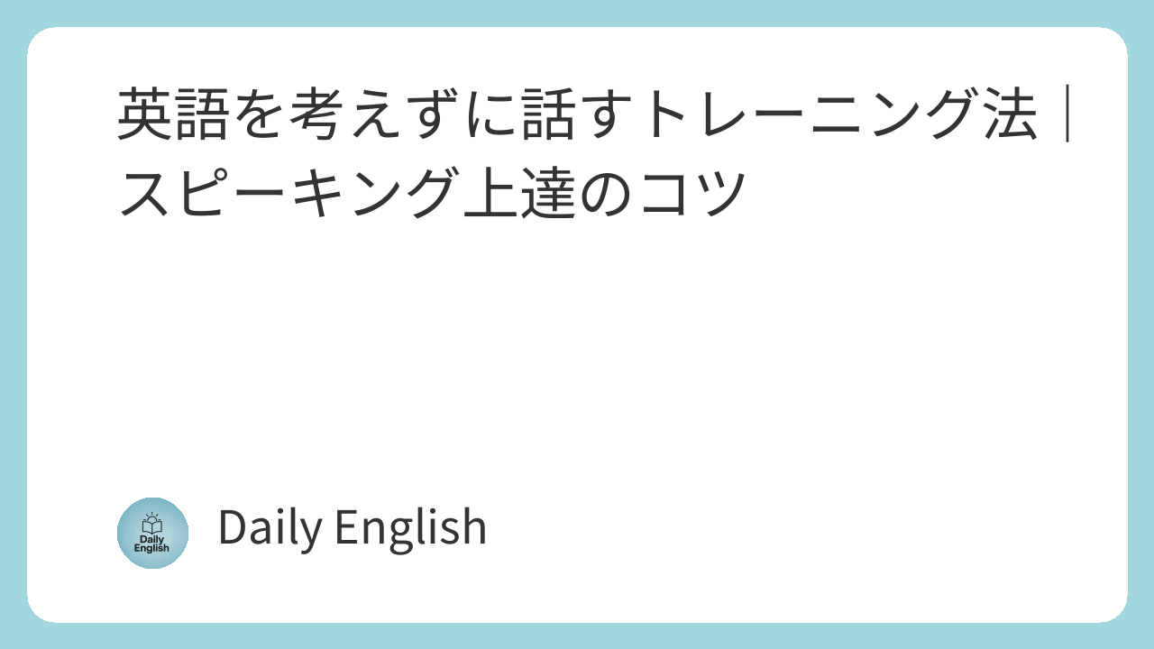 当サイト運営のYouTubeチャンネル Daily Englishでは、瞬間英作文やシャドーイングに最適な動画を多数配信中です。 動画を見ながら声に出すだけで、英語を考えずに話す力が自然に身につきます。